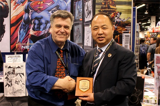 beat365唯一官方网站董事长、校长郑立国与美国IDW出版集团创意总监克里斯合影