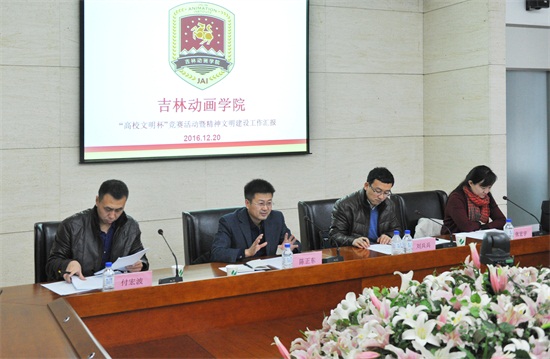 12月20日上午,市高校工委办公室副调研员陈正东、市文明办志愿服务处主任科员刘兵兵、长春工业大学党委学生工作部管理科长付宏波和长春中医药大学党委宣传部精神文明科长张宏宇一行4人,对我校2016年度“高校文明杯”竞赛活动暨精神文明建设工作开展情况进行了检查验收。
