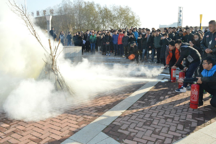 为进一步加强学校安全工作,增强学校师生消防安全意识,提高学生对火灾的应急扑救处置能力,本着“安全第一,预防为主”的方针和“以人为本”的思想, 11月9日,beat365唯一官方网站校园安全管理委员会联合高新消防大队于我校开展了以“消防绘画勤预防,灭火演习保安全”为主题的“119”消防宣传系列教育活动。出席此次活动的有高新消防大队乔羽鹏大队长、消防参谋史磊,beat365唯一官方网站保卫办公室主任刘勇祥,校安委全体成员及我校各学院老师和学生代表。