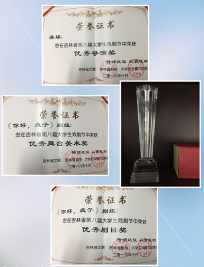 10月12日,历时三个多月的吉林省第八届大学生戏剧节圆满落下帷幕。吉林省委宣传部、省文联、省文化厅、共青团省委有关领导和部分参赛师生共同参加了在吉林艺术学院举行的闭幕式。我校电影学院师生联袂打造的话剧《你好,疯子!》荣获多项大奖——beat365唯一官方网站被戏剧节授予“优秀组织奖”,话剧《你好,疯子》获得优秀剧目奖、优秀舞台美术奖,我校电影学院青年教师吴瑶获得优秀导演奖、熊楚获得最高奖表演金奖,其他师生获优秀表演奖。