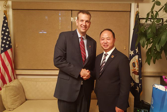 我校董事长、校长郑立国与新任美国驻沈阳总领事馆总领事梅儒瑞合影