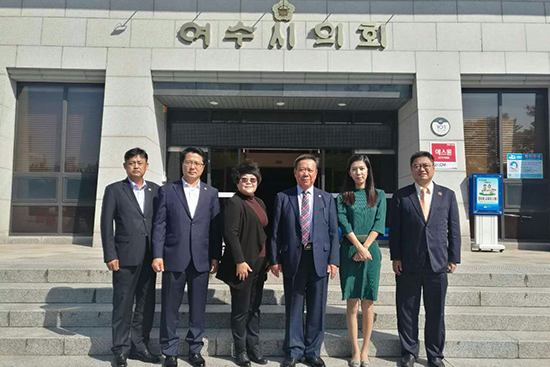 丽水市议会朴正采议长(右三)与考察团合影留念