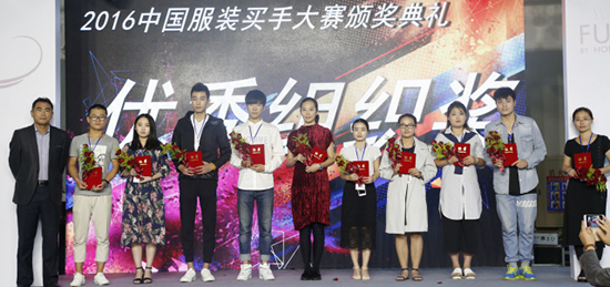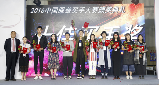 大连市服装博览会副主任、大连服装纺织协会会长田平为荣获“十佳买手”奖代表队颁奖(左三为我校代表)
