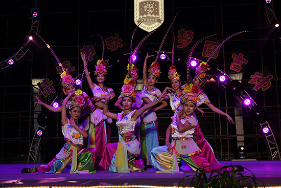 秋风送爽,中秋月圆。电视与新媒体学院、电影学院的歌伴舞《莫尼山》,以浪漫、深情的方式祝福所有在场的领导、老师、同学们中秋节快乐。由动画艺术学院选送的节目《V家缭乱狂欢》和幻醒旅团的cosplay表演《野良神》一登场就引起了全场的欢呼声,逼真的人物造型、细致的布景道具,受到了现场观众的热烈欢迎,同学们纷纷挥舞手里的荧光棒,现场掌声、欢呼声此起彼伏。