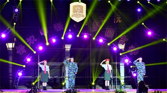 2016级新生表演的相声《聋子打岔》,让现场许多人都不由得捧腹大笑,活跃了现场气氛。大学生艺术团的民族舞蹈《俏花旦》京韵十足;广告学院歌曲《我的天空》自由洋溢,展现了这一代人的精神追求;小品《艺考风波》则通过四位考生的艺考故事,把同学们带回到那段为艺考努力的日子,虽然有泪也有笑,却仍旧值得怀念;电视与新媒体学院的朗诵《秋思呓语》告诉同学们要珍惜时光,迎接每一次机遇和挑战;接下来,整齐的步伐,响亮的口号,全体军训教官的一首《强军战歌》慷慨激昂、豪情万丈;2016级新生辅导员集体演唱了一曲《相亲相爱》,富有深情的歌声使全场响起热烈的掌声和欢呼声,新生们也纷纷跑上舞台,给十几天来近乎朝夕相伴的教官、辅导员老师献上鲜花和深情的拥抱。