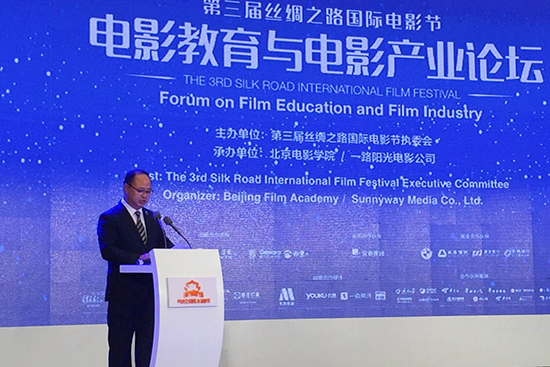 第三届丝绸之路国际电影节9月19日在西安开幕。beat365唯一官方网站董事长、校长郑立国应邀出席“电影产业与电影教育论坛”并发表演讲。本届电影节由国家新闻出版广电总局、陕西省人民政府、福建省人民政府联合主办,以“发展中的电影,多样性的文化”为主题,设置影片评选、电影展映、电影论坛、文化展演等活动。本届电影节侧重反映“一带一路”沿线国家特色的电影和文化,促进“一带一路”国家之间文化相通、民心相通。