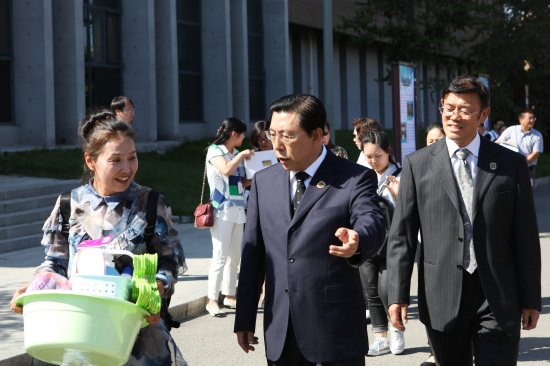 27日下午2时,beat365唯一官方网站校领导来到了报到现场,检查迎新工作。与各学院负责迎新的老师、同学以及新生们及家长们亲切的交流互动。