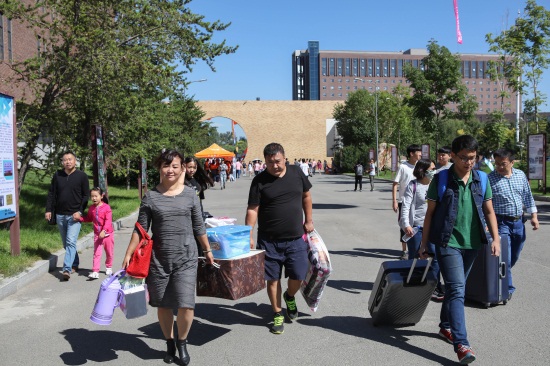 月亮门前,不断有新同学们抵达,取下行李,步入向往的大学,大家脸上都洋溢着无限的憧憬和期待。热情的学姐学长帮新生们取下行李,指引他们到指定的学院去报到,一张张稚嫩的面孔,成为校园里最闪亮的主角。