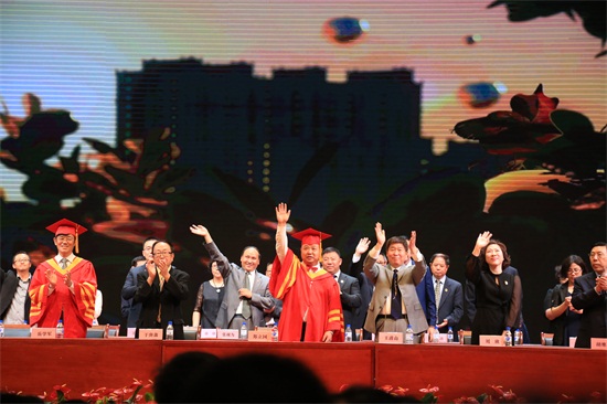 在回顾了四年前同学们刚入校时,他曾经对同学们说过的话,董事长、校长郑立国说到了梦想与责任,他希望同学们依然能够把梦想与责任牢牢记在心间,牢记五个不忘:一不忘学校的优秀文化传承,二不忘终身学习,三不忘创新创造,四不忘社会责任,五不忘感恩回报。