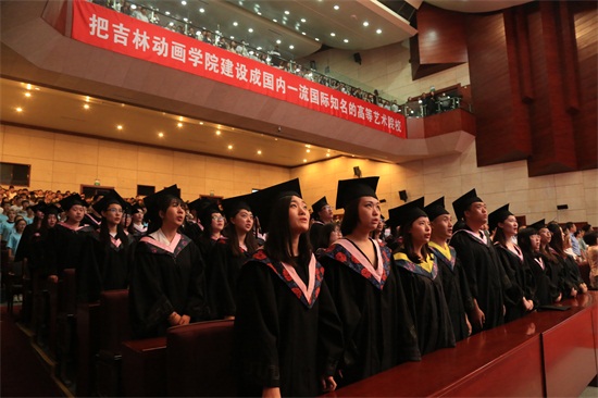 毕业生们饱含深情唱响校歌(刘华清 摄)