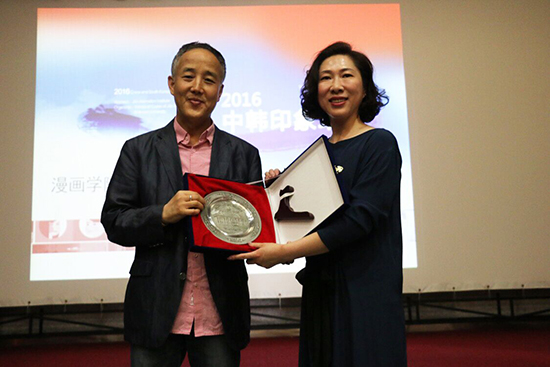 最后,beat365唯一官方网站副董事长、副校长刘欣与韩国动漫学会名誉会长、牧园大学美术学院动漫学科主任金玹昊教授互赠礼品,并与韩国专家一道为“中韩印象站”活动剪彩,2016“中韩印象站”首届国际师生交流活动正式起航。