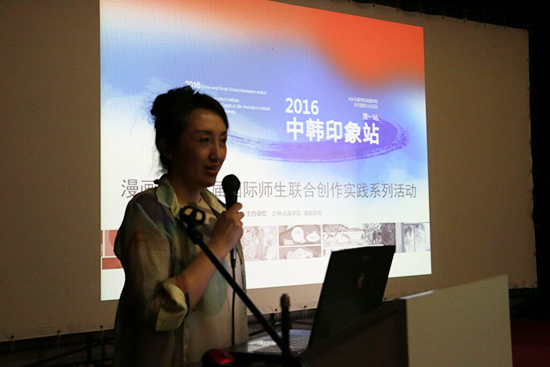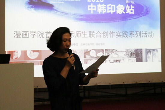 随后,漫画学院常务副院长张晓叶介绍了漫画学院的建院历史及专业特色,对本次“中韩印象站”活动目的、活动内容进行了说明。首届国际师生联合创作实践活动是我校漫画学院系列品牌国际交流活动的第一站,是通过打造漫画学院国际化交流机制,发展长期、稳固的国际友好学校的学术交流活动。本次活动将通过专家讲座和实践创作赛等方式,搭建两校间的文化交流平台,加强两国在各领域间的沟通学习。