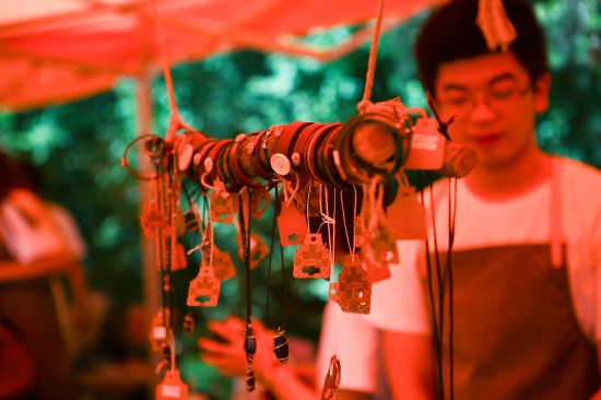 记者在市集上逛了一圈,发现大部分摊位都标明可以按需定制,还有部分摊位设有体验区,如美甲、化妆彩绘等等,“私人定制”和“亲身体验”成为了这次市集的主题词。