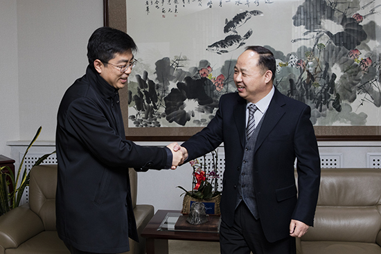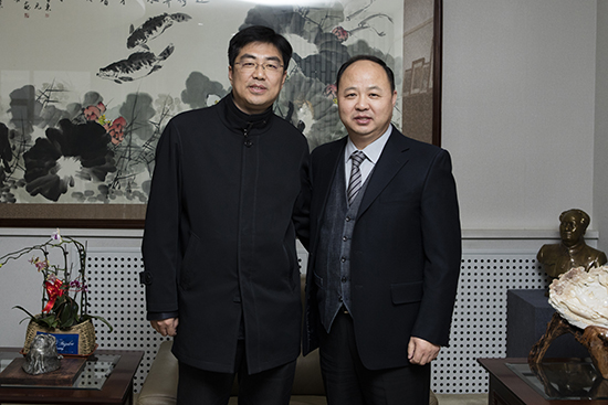 我校董事长、校长郑立国与光明日报记者合影留念(刘子铭 摄)