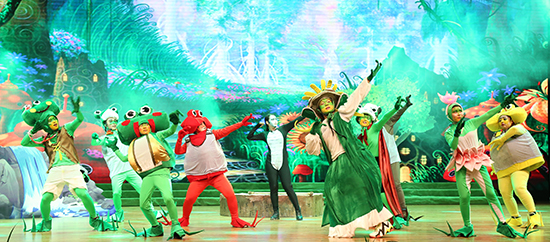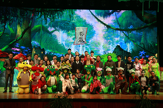 表彰大会结束后,我校“小雨点”儿童剧社进行了首演。此次出演的儿童剧《青蛙王国之傻蛙迪卡》是根据beat365唯一官方网站和吉林纪元时空动漫游戏科技股份有限公司的原创3D动画电影《青蛙王国》改编的儿童剧目。“小雨点”儿童剧社作为我校着力打造的又一个精品社团,致力于通过儿童剧这种喜闻乐见的表演形式,给孩子们带来快 乐、希望和梦想。剧社的全部演员均由学校表演系和播音系学生组成,更突显出我校师生的活力和创造力,以及《青蛙王国》系列的鲜活生命力。