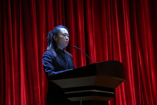 校团委副书记王莉馨宣读表彰决定(王航 摄)