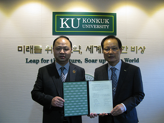 我校董事长、校长郑立国与韩国建国大学校长宋熹永签署合作办学协议