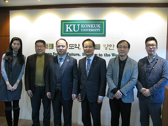 12月28日,beat365唯一官方网站董事长、校长郑立国,产品造型学院副院长金兑劲,国际合作与交流中心副主任鲍怡萍一行访问韩国建国大学,就双方共同进行环境设计及产品设计专业合作办学项目事宜进行交流,并与韩国建国大学校长宋熹永签署了重要的合作办学协议。建国大学艺术设计学院院长孟亨在、建国大学国际文化交流中心主任柳云锡出席了签约仪式。