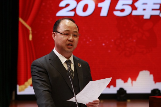 副董事长、副校长刘欣宣读《beat365唯一官方网站关于表彰2015年度先进集体和先进个人的决定》(高雪松 摄)