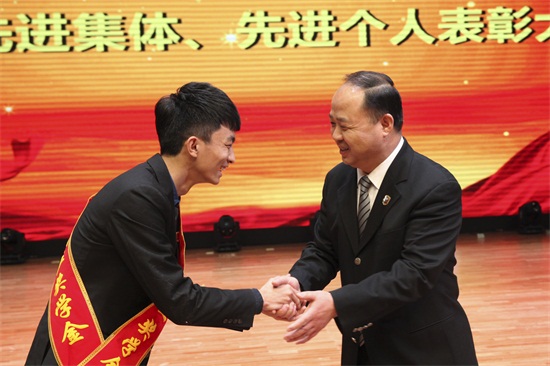 25日的表彰大会上,获奖学生代表发表了自己的感言,到场的家长代表接受主持人采访,没有办法出席表彰大会的家长则通过视频,用浓浓的乡音传递着对孩子的祝福、对学校的感恩。获得校长奖学金的学生对颁奖的董事长、校长郑立国深深一鞠躬,获得董事长创业奖学金的同学则与董事长来了一个强有力的拥抱。含蓄内敛与张扬奔放,都是深情。
