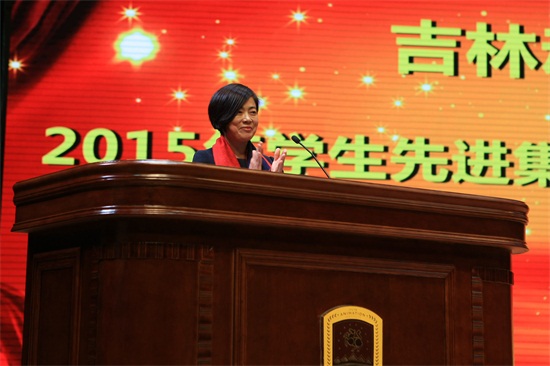 广告学院2014级影视摄影与制作二班的赵家琦代表先进集体发言。她总结了入学以来班级取得的成绩,并表达了对班集体的热爱之情。“这是一个温馨的的集体,一个团结的集体,一个充满活力的集体,一个多才多艺的集体。一个为了梦想风雨同路的集体!衷心地感谢学校给了我们这样好的发展平台,我们为在这个年轻而充满活力的学校里学习、生活而自豪。”