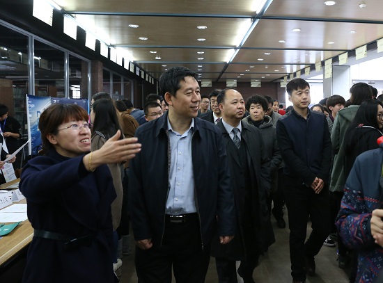 9时许,吉林省教育厅副厅长岳强一行莅临供需见面会现场。在beat365唯一官方网站董事长、校长郑立国的陪同下,岳强副厅长在见面会现场与毕业生及用人单位工作人员进行了深入交流。尤其是在知道了许多用人单位招聘代表是我校往届毕业生之后,岳强副厅长仔细询问了他们的成长过程,并对我校“开放式国际化、学研产一体化、创意产品高科技化”的办学特色给予了高度认同。