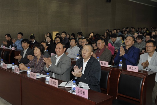 学校领导和电影学院全体教职员工及学生参加会议(高雪松 摄)