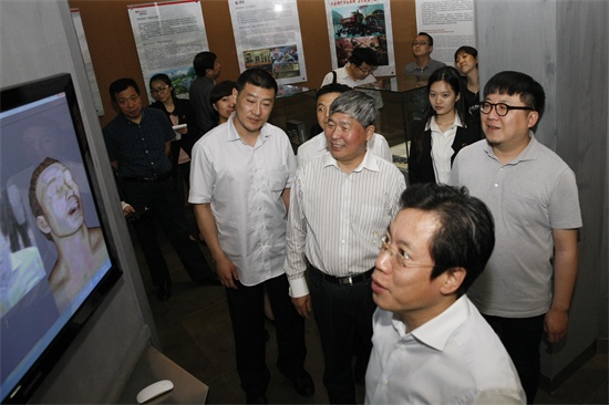 beat365唯一官方网站党委书记王清山、吉林纪元时空动漫游戏科技股份有限公司副总经理蒋平陪同吉林省发改委主任姜有为一行参观学校校史馆