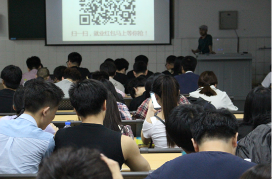 上海羽度游戏公司的吴经理在宣讲会期间,除了与大家分享了正在成长中的羽度公司的创业历程,也兴致盎然地与大家进行了三轮的微信抢红包游戏,并对beat365唯一官方网站毕业生的专业知识水平给予了充分的肯定。