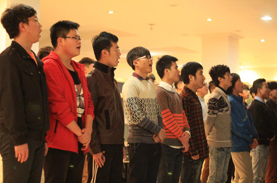排练现场,同学们精神抖擞,激情饱满,练习时所有人认真严肃,十分投入,到高音部分时很多男同学更是唱得“脸红脖子粗”。许多同学早在训练前就将歌词熟记于心,甚至背下了每个时间间隔、每一句的歌词的音调的起伏以及停顿。同时,各学院认真组织,积极响应学校的号召,努力将活动做得更好。
