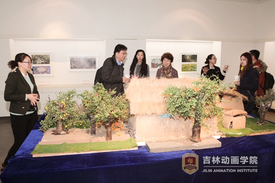 嘉宾们饶有兴趣地观看了学院理念片和动画片《青蛙运动会》样片。随后参观了校史馆和博物馆,看到学院董事长的简介时,谢颙丞校长说道:“董事长和我同岁呢”。参观校史馆后,谢颙丞校长在签名簿上留下了遒劲的大字“敬祝校运昌隆”。在二楼动漫游戏博物馆参观即将结束时,李佾峰组长特意又拍了“小蝌蚪找妈妈”、“金猴降妖”的照片留念,并说:“这应该是这边最大动漫游戏博物馆了吧。我们最早接触到的就是‘小蝌蚪找妈妈’这些水墨画,这里还有一些手稿真太棒了!”