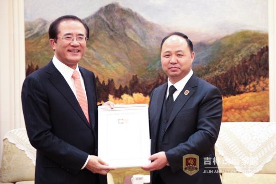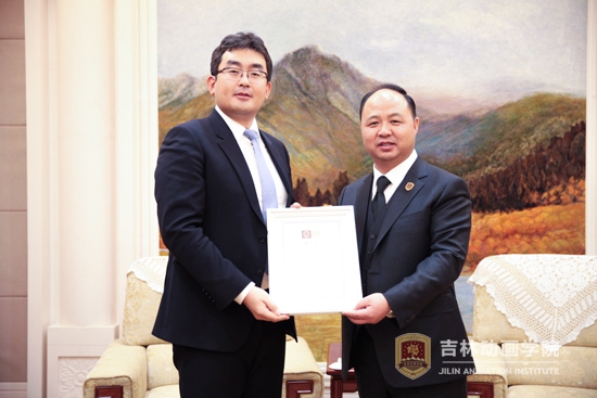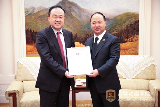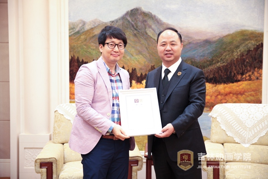 董事长郑立国为韩国文化产业振兴院院长洪相杓颁发客座教授聘书