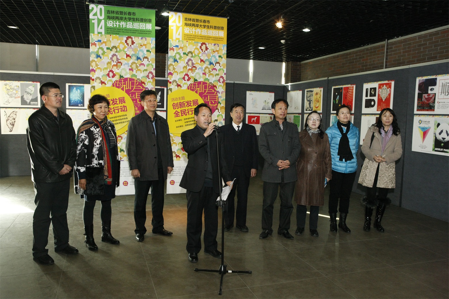 吉林省科协副主席曹军致辞,他说,几年来,在大家的共同努力下,我省高校科普创作显现出勃勃生机,大学生原创科普作品已经成为群众性科普活动中一道亮丽的风景,“巡回展”也用科普创意在海峡两岸大学生中架起了一座连心之桥。可以说,“巡回展”为我省科普事业“大联合、大协作、大开放”的工作格局提供了生动而有力支撑;“巡回展”所取得的创新性成果,也为我们在新时期科普工作的创新发展提供了经验。公众科学素质的提升,需要各界的真诚合作。在未来的工作中,我们要紧紧围绕在国务院主抓的《科学素质纲要》工作这一政府行为的旗帜下,使其效应最大化。我们将按照“规模大、场面大、声势大、效益好”原则,支持并联合各界开展好各类品牌示范主题科普活动。高校作为科普工作的重要要社会力量,在科普创意和创作方面具有得天独厚的学术优势和网络优势。希望大家再接再厉,以习近平总书记在文艺座谈会上的重要讲话精神为指引,以中华民族伟大复兴为己任,积极探索,开拓进取,主动作为,设计出更多“有筋骨、有道德、有温度”的科普艺术佳作。