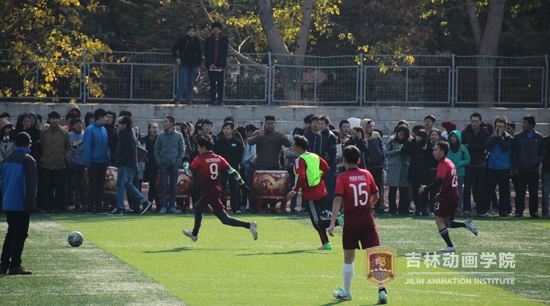动漫分院自发组成的200余名师生助威团队现场摇旗呐喊,伴随着鼓阵的强有力节奏,振聋发聩,充满激情。“动漫加油”的口号应喝鼓点的节奏一直响彻在田径场上空。动漫足球的辉煌展现了动漫学子激昂的拼搏斗志和积极向上的精神风貌,动漫足球的辉煌是学院各项事业辉煌发展的缩影,是动画行业蒸蒸日上的一抹亮丽风采。祝贺动漫分院足球队终圆“三连冠”之梦,祝愿学院的发展日新月异,更加灿烂美好。