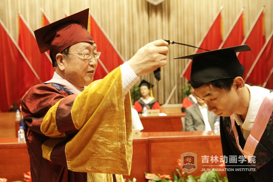 于庚蒲院长为获得学士学位的学生代表拨流苏