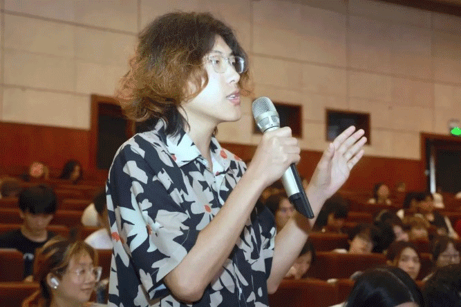 交流研讨会上,丁柳元走到师生中间,积极详实地解答师生的提问,并对学生的经典话剧片段表演进行现场点评。如何塑造与演员本身性格差异大的角色?怎样解决台词生活化与缺乏表现力的这个矛盾点?如何拉近演员和角色间的距离?······针对每一个问题,丁柳元都深入全面解答,与师生一起探讨。她说,演员要永远奔赴到角色中,融入到角色所处的时代;要多读书,读经典书籍,增加自己文化底蕴;表演要用心,要有情境感,不要机械地模仿,是真正生活的自然情景流露。丁柳元分享了她在表演创作时的经历,通过几个小案例启发学生如何表演,把角色塑造好。