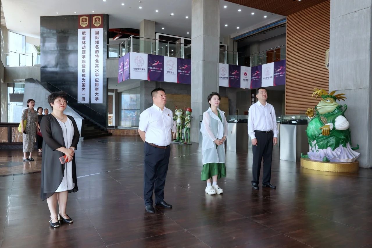 活动正式开始前,丁柳元在岳武、刘振华等陪同下先后参观了校史馆、吉林国际动漫博物馆、学研产一体化创作成果展厅。丁柳元了解了我校发展历史,对吉动24年来取得的成就表示赞誉。在博物馆内,看到如此多业界大师的手稿作品,她激动地说:“这些手稿生动、鲜活,是真正的艺术,饱含着蓬勃的生命力,无比珍贵。我感动得眼眶盈满泪水。”在学研产一体化创作成果展厅,她对我校师生的原创作品给予了高度评价。