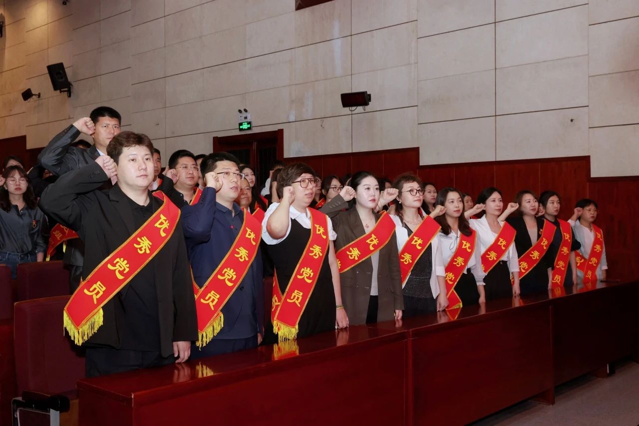 表彰大会在校大学生艺术团《在灿烂的阳光下》的优美歌声中拉开帷幕。在雄壮庄严的国歌声中,表彰大会正式开幕,气氛庄重热烈。九十四名新党员面向党旗进行入党宣誓,百余名老党员代表重温入党誓词。铮铮誓言,初心不改,彰显矢志不渝跟党走的信心和决心。