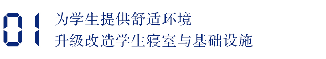 学校秉持一切“以学生为中心”,高度重视学生的住宿和生活环境。暑期,后勤部门紧锣密鼓开启对学生寝室的维修改造工作。已顺利完成部分学生寝室墙体的粉刷翻新、顶楼的防水维修工作,同时燃气锅炉和管道的清洗工作业已结束。此外,为12号公寓地下食堂增设了消防安全设施和安全疏散出口。学生公共浴室和大学生超市改造工作正同步进行。学校始终将师生安全放在首位,本次改造维修工作也对校园主干道和步行道进行规划、实施路面和路缘整修,同时合理布局消防设施、监控系统,完善安全提示等建设工作。