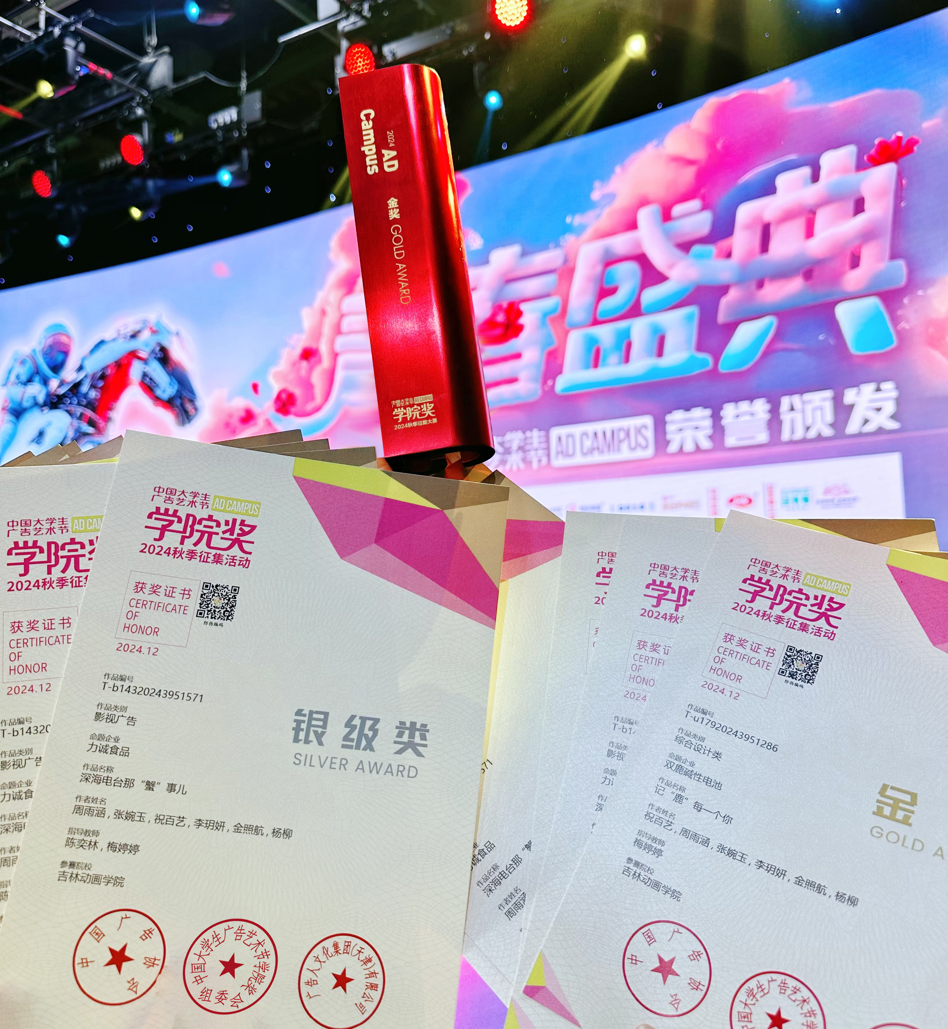 吉动学子荣获“中国大学生广告艺术节学院奖”2024秋季赛金银两项大奖!