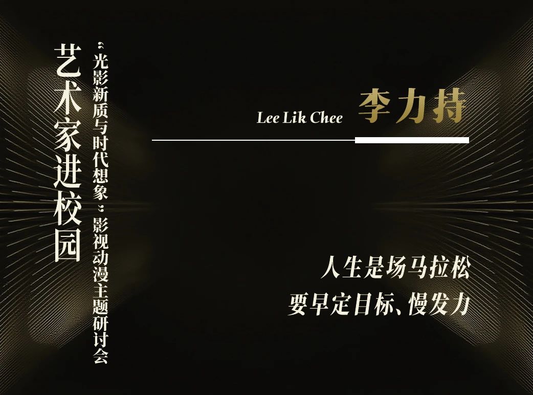 李力持幽默风趣地讲述自己突破自我、逆袭圆梦的历程。他说,自己因一部电影感动而立志成为导演,被老师评价“沉默寡言、个性孤僻,不适合娱乐圈”,却因此激发他的斗志。他从货仓管理员起步,自费报读影视课程,学习分镜头、导演技术,最终成为电影导演。他坚信,后天的才华不是天赋,而是日复一日的坚持。在分享与周星驰、吴孟达的合作经历中,他表示,“专业精神藏在细节里”,吴孟达能记住所有对手台词,累到在洗手间睡着仍不忘角色,并以此鼓励吉动学子,幸福是奋斗出来的,不要怕起点低,群众演员也能成为主角,以坚守与热爱扎根行业,用奋斗书写光影人生。