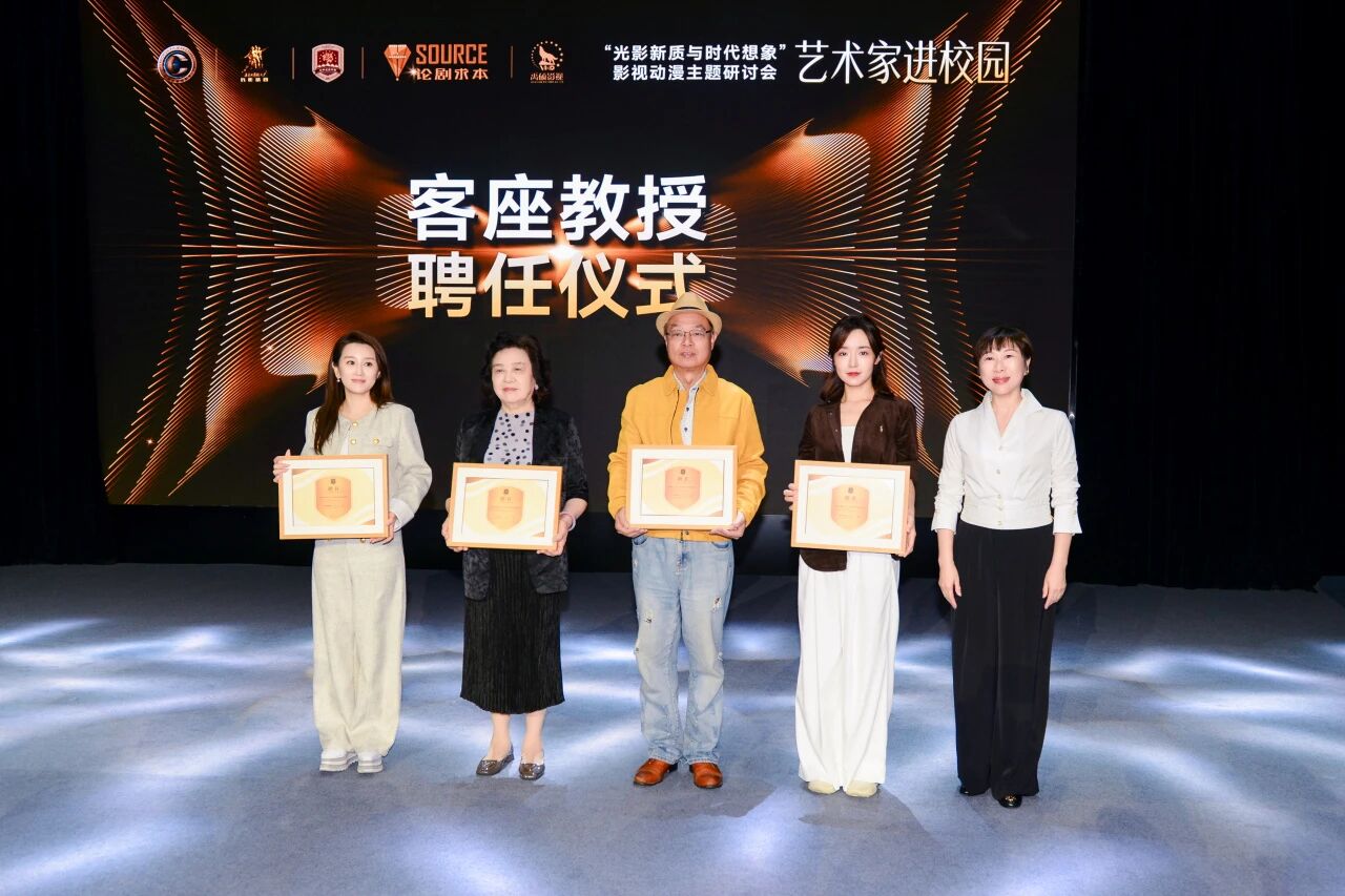 活动现场,学校聘任肖桂云、李力持、李木子、袁霆等四位艺术家为客座教授,刘欣为其颁发聘书,期待各位专家未来常莅临指导,以光影艺术为纽带共育影视英才,共谋产业发展。