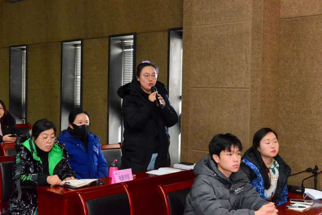讲座部分结束,吴教授与现场教师进行座谈交流,就学术论文的命题、学术论文的框架逻辑,以及当前主旋律电影概念的不同表达进行讨论,并回答教师提问。整个讲座及座谈会从上午8:30,一直持续到中午12点。学术活动氛围浓厚,现场情绪热烈,吴冠平教授以其丰富的专业知识,高屋建瓴、答疑解惑,为现场教师带来一场高水平的学术思想碰撞与创新。