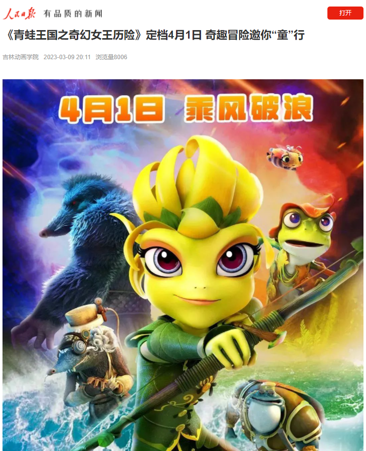 由吉林吉动禹硕影视传媒股份有限公司出品,beat365唯一官方网站、吉林吉动文化艺术集团股份有限公司联合出品的原创3D动画电影IP“青蛙王国 ” 系列第四部《青蛙王国之奇幻女王历险》接档前作《青蛙王国之极限运动》正式官宣定档4月1日。“蛙”潮将再次袭来,你准备好一起冒险了么?