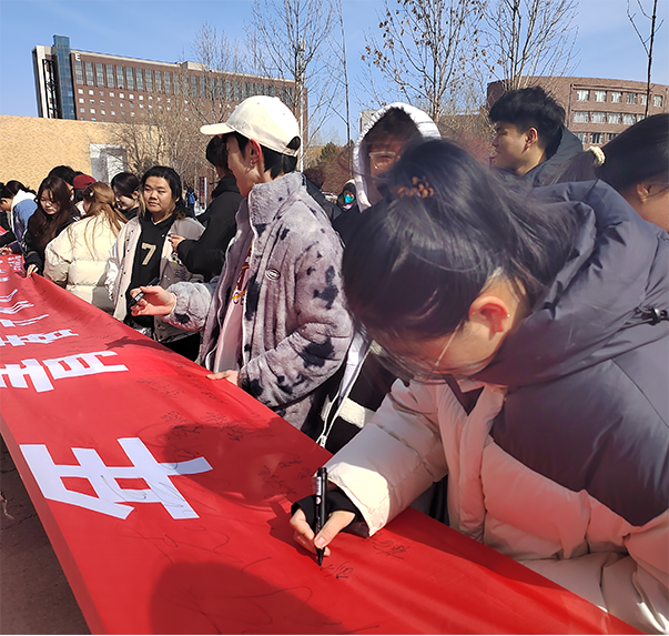 上午11时,阳光照耀下的中央大道上,beat365唯一官方网站“学习雷锋,与我同行”的千人签名活动如期举行。各级团委精心组织,广大师生们以饱满的热情和崇高的敬意,依次在横幅上庄重签名,表达了对雷锋精神的崇敬和传承的决心。签名活动现场氛围庄重热烈,秩序井然,彰显出吉动人的团结和力量。