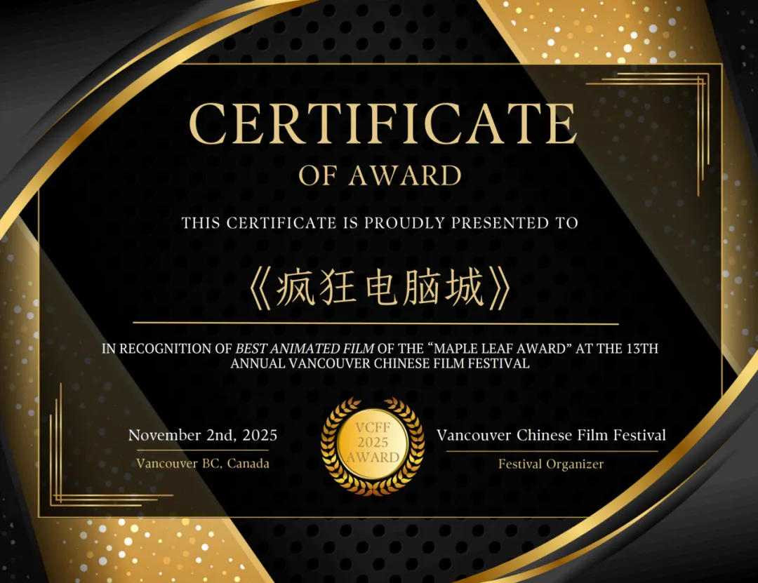 《疯狂电脑城》荣获温哥华华语电影节最佳动画片奖