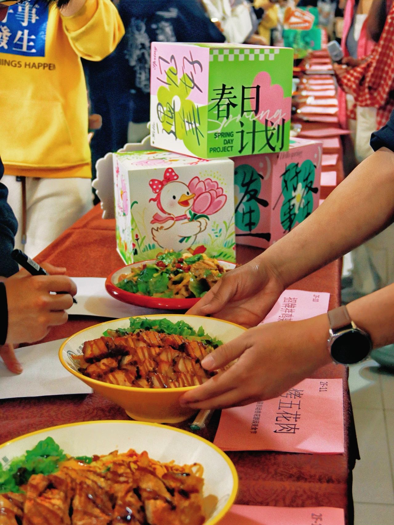同学们捧着美食