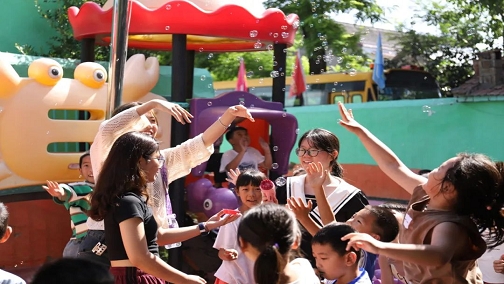 beat365唯一官方网站志愿者们与孩子们做游戏