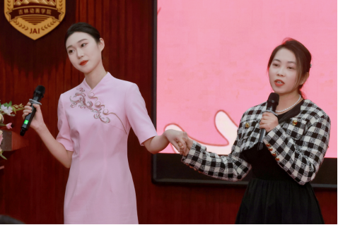一等奖获得者民航学院辅导员尚莲姿与学生进行才艺展示