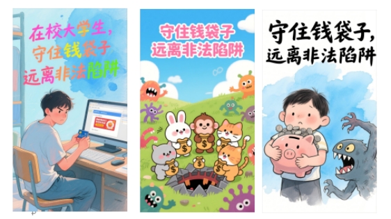 各学院结合专业优势,组织丰富多彩的防非主题活动,设计与产品学院、电影学院组织开展主题海报作品征集活动,以艺术创作赋能金融安全宣传,紧扣“提升金融素养 远离非法陷阱”核心主题,将防非教育与设计实践深度融合。